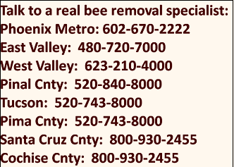 Since 1993, internationally known Arizona honey bee removal, honeycomb removal, Africanized killer bee control, wasp removal, wasp nest removal, aggressive wasp control, beekeeping specialists, not a pest control company.